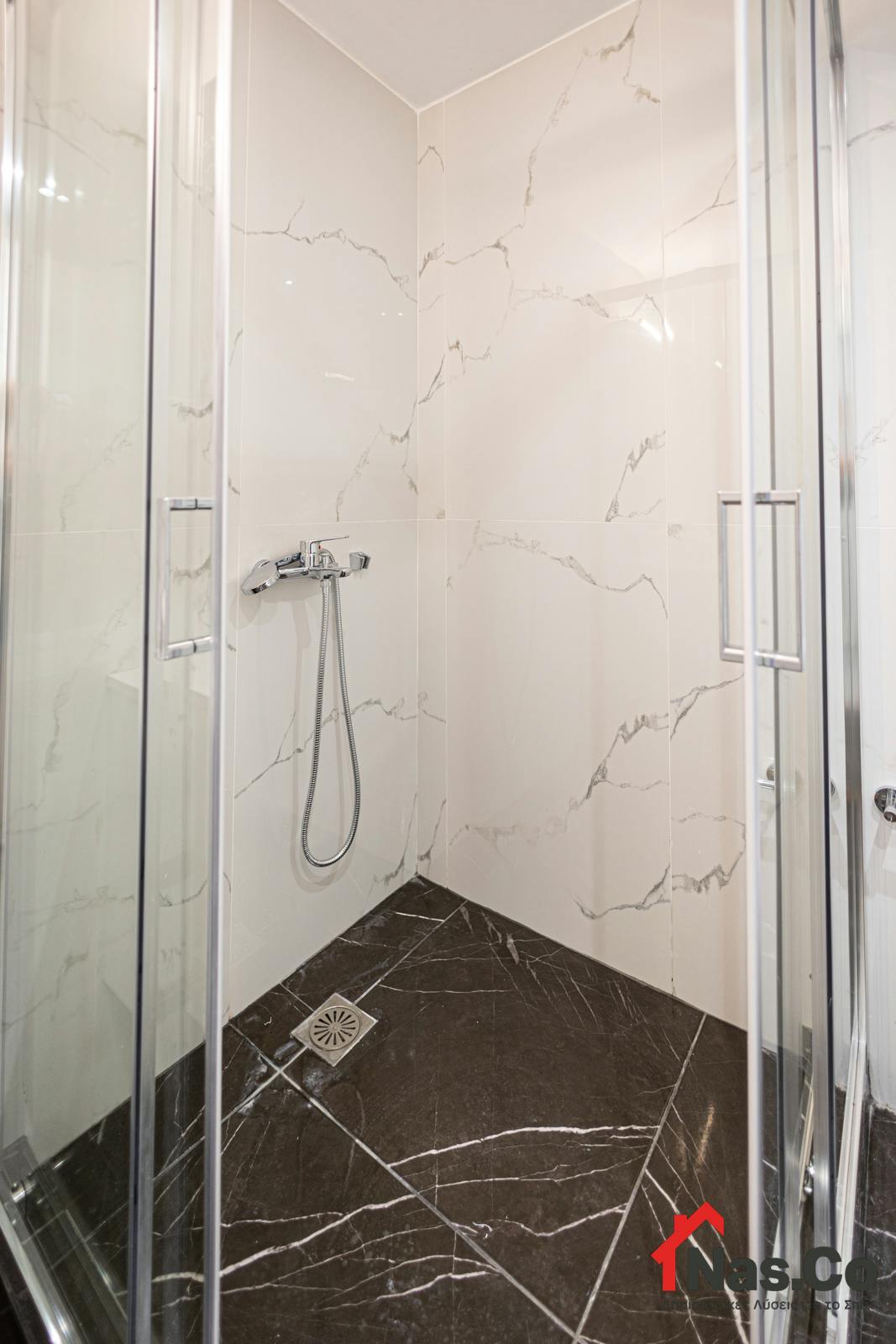 - Τοποθετησαμε επίσης πλακίδια τοίχου – δαπέδου σε λουτρό, ντουζιέρα κτιστή, καμπίνα συρόμενη, στήλη ντουζ, σετ μπαταριών λουτρού-νιπτήρα Piccadilly, επιπλο λουτρού με νιπτήρα από πορσελάνη, λεκάνη ιταλική, καθρέπτη με φωτιστικό , σετ αξεσουάρ και πετσετοκρεμάστρα καλοριφέρ.